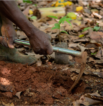 - Bossen en fruitbomen planten op cacaoplantages. Dit zorgt voor de broodnodige schaduw voor de cacao om klimaatbestendigheid van deze gewassen te vergroten, ondersteunt de biodiversiteit en zorgt mogelijk voor extra inkomen voor de boeren.