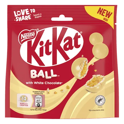 NESTLÉ KITKAT Balls contains delicious chocolate balls made from crispy wafer covered in a delicious layer of white chocolate. Have a break, have a KitKat®.