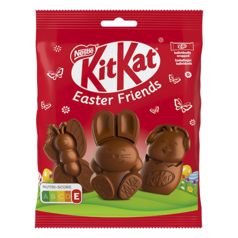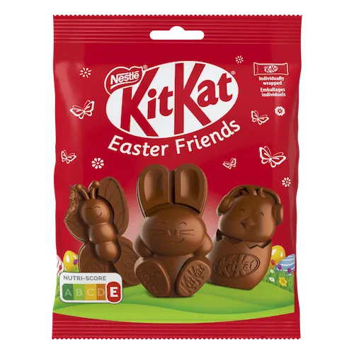 NESTLÉ KITKAT Chocolade paasfiguren bestaat uit 8 mini paasfiguren gemaakt van melkchocolade met een romige vulling met krokante granen- en wafelstukjes. Have a break, have a KitKat.